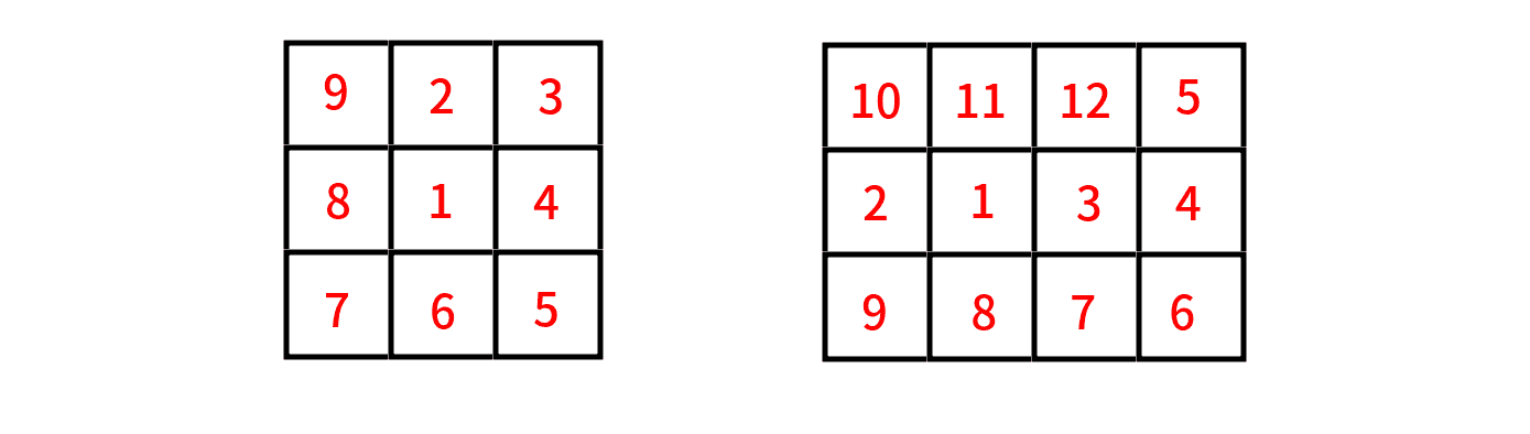 你需要输出 $n \cdot m$ 行。 第 $i$ 行应包含两个整数 $x_i$ 和 $y_i$($1 \leq x_i \leq n$,$1 \leq y_i \leq m$),表示你访问的第 $i$ 个格子。你需要恰好输出 $nm$ 对 $(x_i, y_i)$,且它们覆盖所有可能的 $(x_i, y_i)$,其中 $1 \leq x_i \leq n$,$1 \leq y_i \leq m$。 可以证明,在这些约束下总存在解。如果有多种答案,输出任意一种即可。