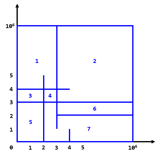 在坐标平面上有一个边长为 $10^6$ 的正方形,其四个顶点分别为 $(0, 0)$、$(0, 10^6)$、$(10^6, 0)$ 和 $(10^6, 10^6)$。