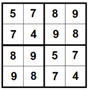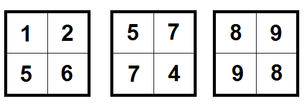 描述的第一行包含两个正整数(大于零且不超过 $100$),分别是当前瓷砖左上角和右上角的数字。第二行包含两个正整数(大于零且不超过 $100$),分别是当前瓷砖左下角和右下角的数字。