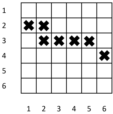 为了提升动物们投掷回旋镖的技巧,动物管理员在一个 $n \times n$ 的网格上设置了一些靶子,其中每一行和每一列最多只能有 $2$ 个靶子。网格的行从上到下编号为 $1$ 到 $n$,列从左到右编号为 $1$ 到 $n$。