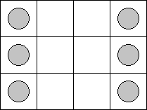 在第一个样例中,兰斯洛特爵士可以在 $2 \times 4$ 的场地中放置 4 名士兵,其位置如下图所示(士兵的位置用灰色圆圈标出):
