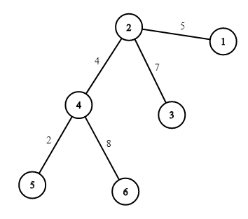 在该图中,你可以选择道路 $(3, 4)$,这样总费用为 $13$。