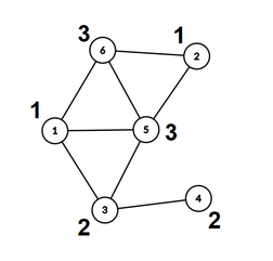 下图展示了第一个样例的认识关系图(每个学生旁边标注了其小组编号)。