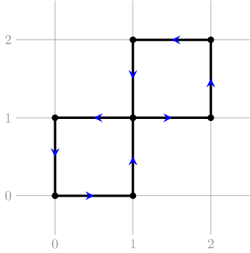在第二个示例的第一个测试用例中,也存在满足要求的折线。注意,折线包含自交,但仅在端点处: