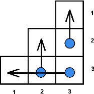 图为 $3$ 级楼梯。箭头表示运动员选择的最短路径。