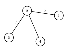 接下来 $m$ 行,每行三个整数 $x_i$、$y_i$ 和 $s_i$($1 \le x_i, y_i \le n$;$x_i \ne y_i$;$1 \le s_i \le 10^9$),表示第 $i$ 条道路连接的城市和限速。所有道路都是双向的。