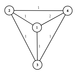 第四个测试用例,只需拆除道路 $1$–$2$,剩余道路网络即可满足要求。