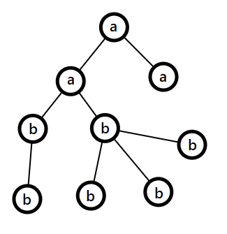 你需要给树上的每个节点分配一个字符 a 或 b,使得 a 的总数等于 $x$,b 的总数等于 $n-x$。