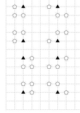下面是第二个样例的示意图。黑色三角形表示重要帐篷。该示例还展示了所有 $8$ 种被禁止的模式。