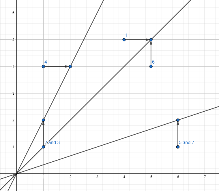 以下是第一个样例中被选中进行操作的点及其移动示意图: