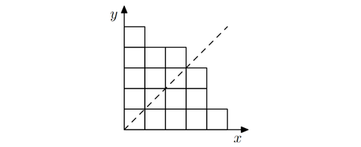 所有人都在为 VK Fest 2021 做准备!为了让观众能更好地看到主舞台,计划建造一个露天剧场。在本题中,我们将从侧面观察它——它的示意图将呈现为由 $n$ 个相同的正方形组成的阶梯形状。阶梯是由一个或多个正方形塔并排组成的图形,且塔的高度从左到右不递增。 下图展示了由 $12$ 个正方形组成的三种不同图形。前两个图形是阶梯,第三个不是。 ![](https://cdn.luogu.com.cn/upload/vjudge_pic/CF1531C/c3f29f4449b740c0b9e4bf33f783c2056dec450f.png) 出于美观考虑,决定露天剧场必须是对称的。形式化地说,如果将其示意图关于直线 $x = y$ 反射,得到的图形与原图完全相同,则称该露天剧场是对称的(其中 $x$ 轴从左到右,$y$ 轴从下到上)。例如,上图中的第一个阶梯是对称的,第二个不是。 ![](https://cdn.luogu.com.cn/upload/vjudge_pic/CF1531C/c8b6a179d527265c360f8c3336d2da1274d329f3.png) 此外,露天剧场还必须尽可能紧凑——也就是说,能够容纳它的最小正方形的边长应尽可能小。 给定数字 $n$,请画出由恰好 $n$ 个正方形组成、满足所有条件的露天剧场示意图。