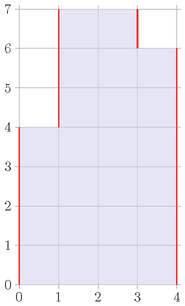 Consider the following example where the histogram has $ 4 $ columns of heights $ 4,8,9,6 $ :