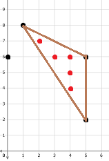 在第一个样例中,只有 $1$ 个围栏。该围栏是有趣的,因为它的面积为 $4$,且被围住的奶牛数量为 $1$,如图中红色所示。 ![](https://cdn.luogu.com.cn/upload/vjudge_pic/CF1548D2/0403ceae6e73450fcff5ed53159c4a8d4ef6577c.png) 在第二个样例中,共有 $4$ 种可能的围栏,但只有其中一个是有趣的。该围栏的面积为 $8$,且被围住的奶牛数量为 $5$。 ![](https://cdn.luogu.com.cn/upload/vjudge_pic/CF1548D2/ce471f2b829d9495e34a49534fc52a48c1ca9528.png) 由 ChatGPT 4.1 翻译