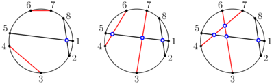 在第一个测试用例中,有三种方式画出 $2$ 条新弦,如下图所示(黑色为初始弦,红色为新弦): ![](https://cdn.luogu.com.cn/upload/vjudge_pic/CF1552C/704c17cd22decf087937d97766096b41bea230a2.png) 可以看到第三种方式获得的交点数最多,为 $4$。 在第二个测试用例中,没有更多弦可画。显然,只有一条弦时没有交点。 在第三个测试用例中,可以通过画 $1-3$ 和 $2-4$ 两条弦获得最多 $1$ 个交点,如下图所示: ![](https://cdn.luogu.com.cn/upload/vjudge_pic/CF1552C/abc82045666e4296b48f8b98db9ad5de10f98734.png) 由 ChatGPT 4.1 翻译