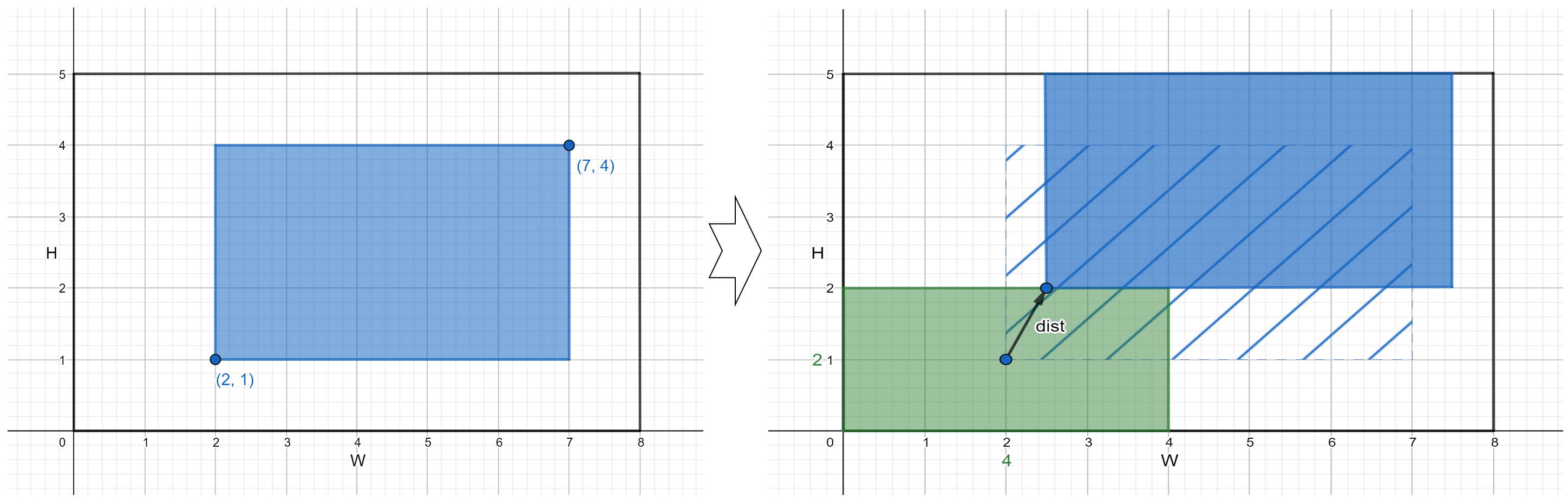 在第三个测试用例中,你可以将第一张桌子向 $(0, 2)$ 移动,使左下角从 $(0, 3)$ 移动到 $(0, 5)$。