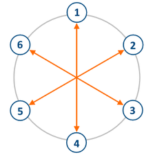 上图为 $6$ 个人围成的圆圈示例。橙色箭头表示每个人正在看向谁。