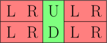 The second line of each test case contains a string $ s $ consisting of $ n $ characters, each of which is either L, R, U, or D, representing the left, right, top, or bottom half of a domino, respectively (see notes for better understanding). This string represents one of the rows of the grid.