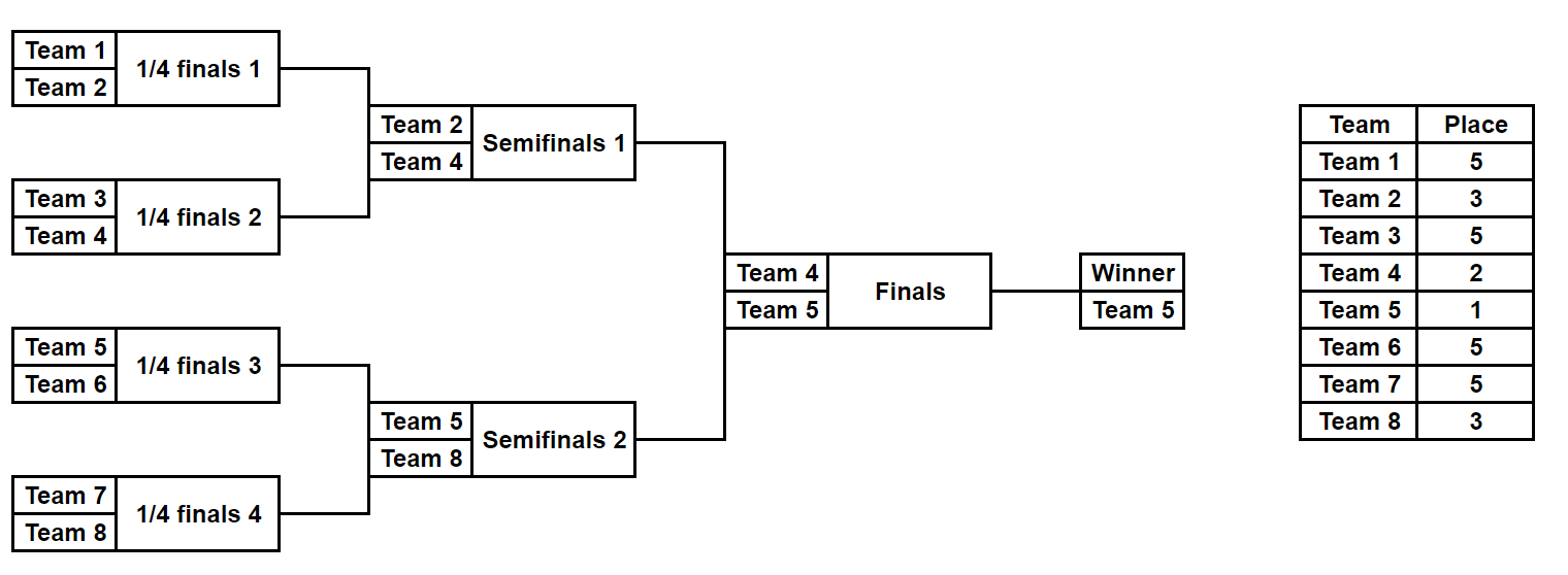 - 所有在四分之一决赛被淘汰的队伍获得第 $5$ 名;