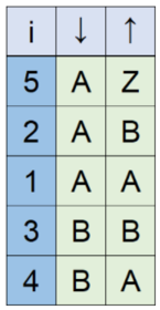 如果在第一个不同的位置,字符串 $a$ 和字符串 $b$ 满足以下条件,则在升降交替排序中,字符串 $a$ 排在字符串 $b$ 之前: