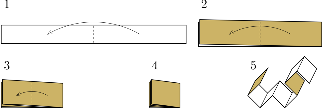 龙曲线是一种自相似的分形曲线。在本题中,龙曲线由若干长度相同、以直角连接的线段组成。构造龙曲线的一种简单方法如下:取一条纸带,连续 $n$ 次向同一方向对折,然后部分展开,使得各段以直角相连。如下图所示: