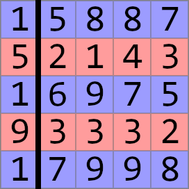 * 右矩阵中所有**蓝色**元素比所有**红色**元素大;