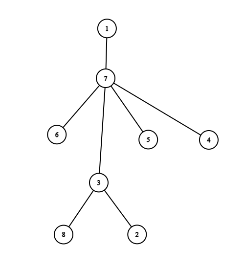 3. $v=1, k=3$:你不应删除任何顶点,此时顶点 $1$ 只有一个子节点($7$),得分为 $1-0\cdot 3=1$;