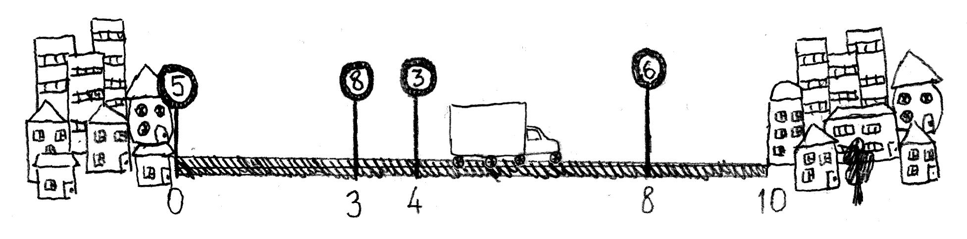 在第一个样例中,不能移除任何标志。因此答案为 $47$,如题目所述。 在第二个样例中,可以移除第 2 个和第 4 个标志。此时,你需要用 $4\cdot 5 = 20$ 分钟行驶四公里,然后用 $6\cdot 3 = 18$ 分钟行驶六公里,所以总时间为 $4\cdot 5 + 6\cdot 3 = 38$ 分钟。 由 ChatGPT 4.1 翻译