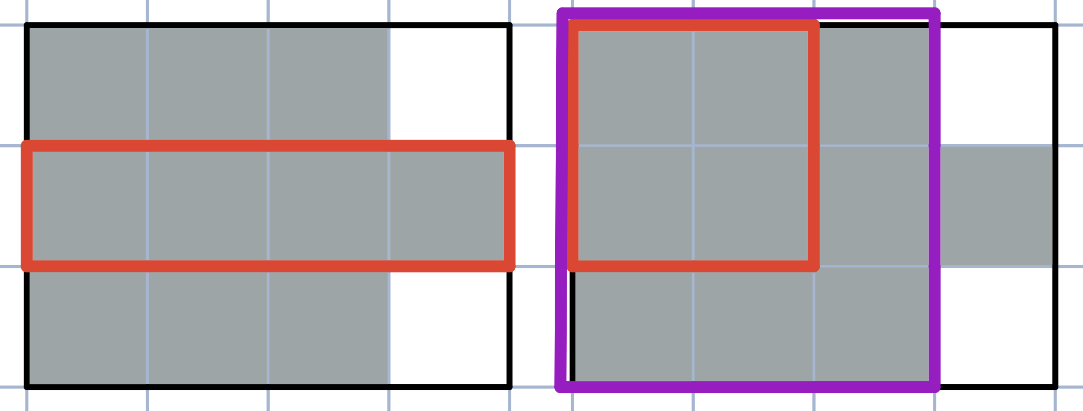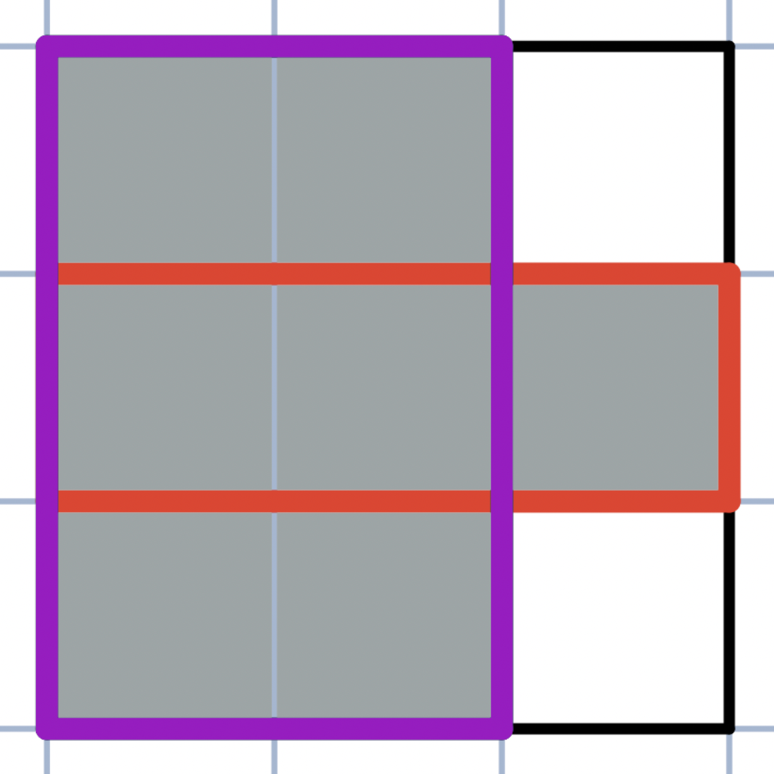 - 如果存在某个格子同时属于两个子矩形,则这两个子矩形相交。