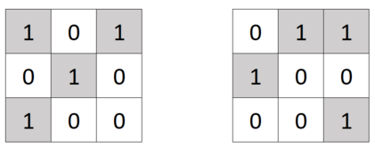- 选择任意一个元素 $A_{ij}$,将其赋值为 $A_{ij} \oplus 1$。也就是说,将 $(A_{ij} + 1) \bmod 2$ 写入 $A_{ij}$。