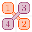 在第一个样例中,有 $4$ 位参赛者,排列如下: ![](https://cdn.luogu.com.cn/upload/vjudge_pic/CF1662N/e7e2a81b002e3a2bac197b62545c6ad11a69f7a8.png) 只有一种方式选择四位参赛者,即年龄为 $1$ 和 $2$ 的参赛者举一根杆,年龄为 $3$ 和 $4$ 的参赛者举另一根杆。但如图所示,两根杆交叉了。 ![](https://cdn.luogu.com.cn/upload/vjudge_pic/CF1662N/626f6c3701e63bf775605758d69491672a9a7858.png) 因此,没有合法的选择方式,答案为 $0$。 在第二个样例中,$4$ 位参赛者排列如下: ![](https://cdn.luogu.com.cn/upload/vjudge_pic/CF1662N/52911f8374a060499e28117449cb8c5d56740ef4.png) 同样只有一种方式选择四位参赛者,但这次两根杆没有交叉。 ![](https://cdn.luogu.com.cn/upload/vjudge_pic/CF1662N/3dbefc9c39c8ce185cc2f953aaf6d4a443ef99d4.png) 因此,答案为 $1$。 在第三个样例中,$9$ 位参赛者排列如下: ![](https://cdn.luogu.com.cn/upload/vjudge_pic/CF1662N/0b2bd9d2be4297c7b6df8f81316d0db59aa26e9e.png) 有 $6$ 种方式选择四位参赛者,使得两根杆不交叉,如下图所示。 ![](https://cdn.luogu.com.cn/upload/vjudge_pic/CF1662N/72f4724e30f1d908a8873c65b21364979d578b9b.png) 由 ChatGPT 4.1 翻译