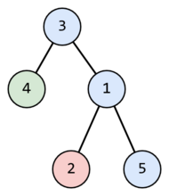 $n=5$ 时以 $3$ 为根的树划分为三条路径的示例。