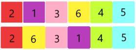 Note that each color $ i $ from $ 1 $ to $ n $ should have a distinct value, and the same color which appears in both tapes has the same value.