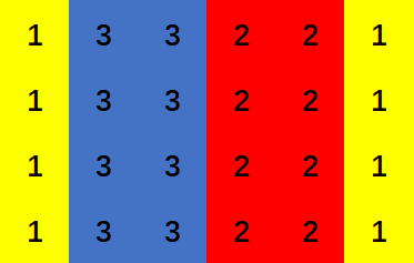 在第三个测试用例中,可以用颜料 $1$ 涂满所有格子。