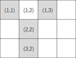 注意,每个格子恰好有 $4$ 个环面邻居。例如,如果 $n=3$ 且 $m=4$,则格子 $(1, 2)$(第一行第二列)的环面邻居为:$(3, 2)$、$(2, 2)$、$(1, 3)$、$(1, 1)$。如下图所示,灰色格子为 $(1, 2)$ 的环面邻居: