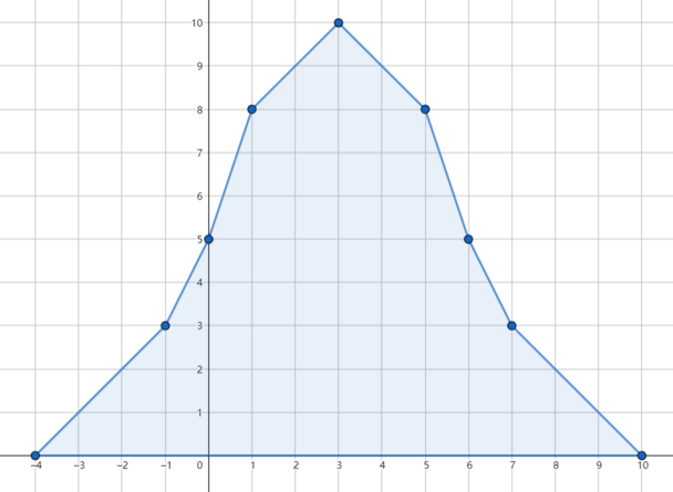 接下来的 $n$ 天都会下雨。在第 $i$ 天,雨水将以位置 $x_i$ 为中心,强度为 $p_i$。由于这些降雨,某些位置会积累雨量;设 $a_j$ 表示整数位置 $j$ 处累计的雨量。初始时 $a_j$ 为 $0$,在第 $i$ 天降雨后,$a_j$ 会增加 $\max(0, p_i - |x_i - j|)$。