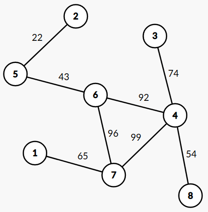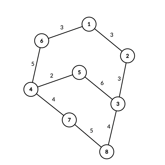Ela 可以让布线巫师对编号为 $7$ 的线缆施法,该线缆连接机器 $2$ 和 $3$。由于机器 $8$ 与机器 $3$ 相连,巫师可以将第 $7$ 根线缆从 $3$ 断开,连接到 $8$,耗时 $3$ 微秒(线缆权值为 $3$)。