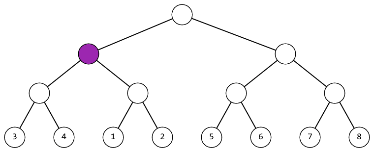 Masha 希望交换一些子树之后可以使从左往右数的第 $i$ 个叶子结点上的正整数为 $i$(因为她觉得这样的一棵满二叉树很漂亮)。你需要帮她找到最少需要交换的次数。