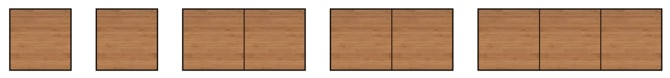 例如,如果 $n=5$,那么这些木块的尺寸分别为:$1 \times 1$、$1 \times 1$、$1 \times 2$、$1 \times 2$、$1 \times 3$。