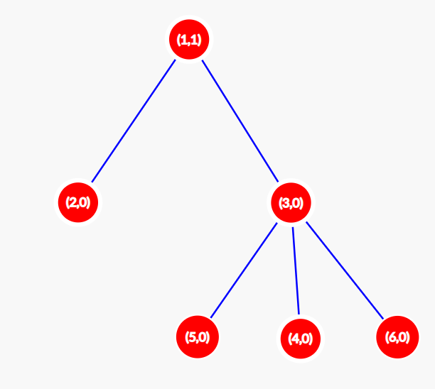 在 $t=1$ 时,配置变为 $[1,0,0,0,0,0]$。树如下图所示。$S(1)=1$。