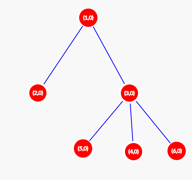 在 $t=2$ 时,配置变为 $[0,0,0,0,0,0]$。树如下图所示。$S(2)=0$。