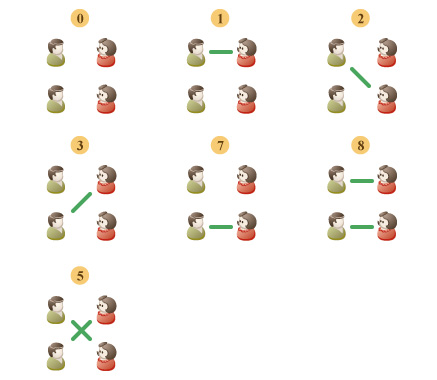 The figure shows 7 acceptable sets of marriages that exist in the first sample.