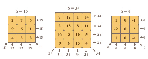 “奇幻正方形” 是一个 $n \times n$ 的矩阵,这个矩阵里面是整数。矩阵每行,每列和主对角线的数之和都等于 $s$ 。下面是一些例子: