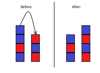 在第一个测试用例中,你可以将第一座塔的顶部方块移动到第二座塔上(见第三张图片)。 在第二个测试用例中,你可以将第二座塔的顶部方块移动到第一座塔 $6$ 次。 在第三个测试用例中,这对塔已经是美丽的。 由 ChatGPT 4.1 翻译