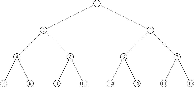 The tree from the first example is shown below. The bold arrows indicate the fox's route.