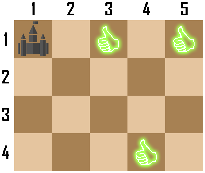 在第一个样例中,棋盘初始状态如下图所示。 ![](https://cdn.luogu.com.cn/upload/vjudge_pic/CF1866I/abb2443546fc42613e118bd34d78329cb16fee7a.png) Chaneka 可以在第一回合直接将城堡移动到特殊格子 $(1,3)$ 或 $(1,5)$,因此 Chaneka 获胜。 在第二个样例中,棋盘初始状态如下图所示。 ![](https://cdn.luogu.com.cn/upload/vjudge_pic/CF1866I/138a57545a74e3d437b301db2aa50b2038494a7a.png) Chaneka 只能将城堡移动到 $(1,2)$ 或 $(2,1)$。无论 Chaneka 如何选择,Bhinneka 都可以直接将城堡移动到 $(2,2)$。此后,Chaneka 无法再移动城堡,因此 Chaneka 失败,Bhinneka 获胜。 由 ChatGPT 4.1 翻译