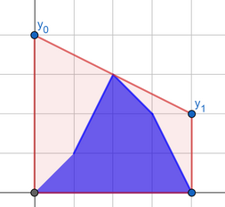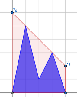 "Flattening" road is equivalent to choosing some line segment from $ (0, y_0) $ to $ (n - 1, y_1) $ such that all points of the polyline are below the chosen segment (or on the same height). Values $ y_0 $ and $ y_1 $ may be real.