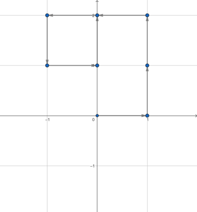 有一个无限的二维网格。最初,机器人站在点 $(0, 0)$。机器人可以执行四种指令: