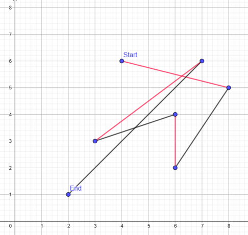 上面的示例并不一定展示了最优策略或正确的玩家选择方式。 下图展示了第一个示例中每位玩家的操作。红色为第一位玩家,黑色为第二位玩家。 ![](https://cdn.luogu.com.cn/upload/vjudge_pic/CF1903E/f7249992dc1dd05fd5ad17cee8e62de0afd41f95.png) 由 ChatGPT 4.1 翻译