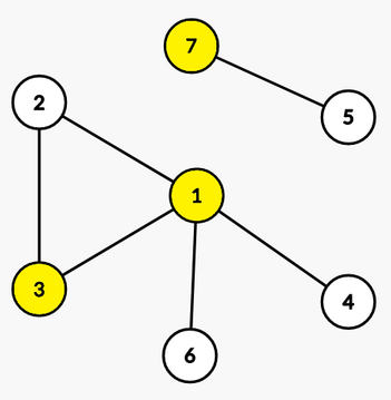 在第一个测试用例中,可以在节点 $1$、$3$ 和 $7$ 处安装摄像头,因此答案为 $2$。