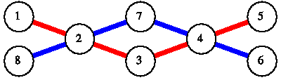 对于第二个样例,具有最少线路数量的地铁方案如下: